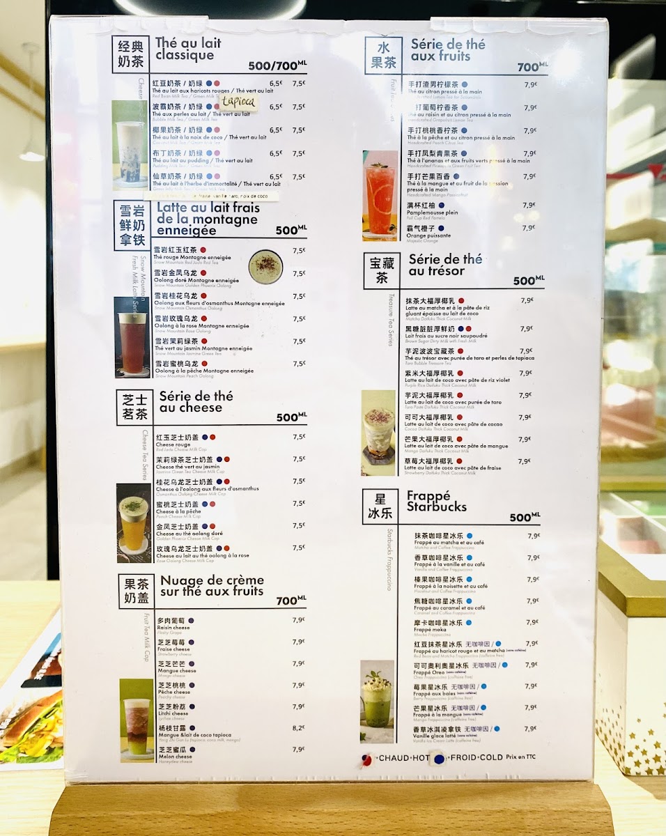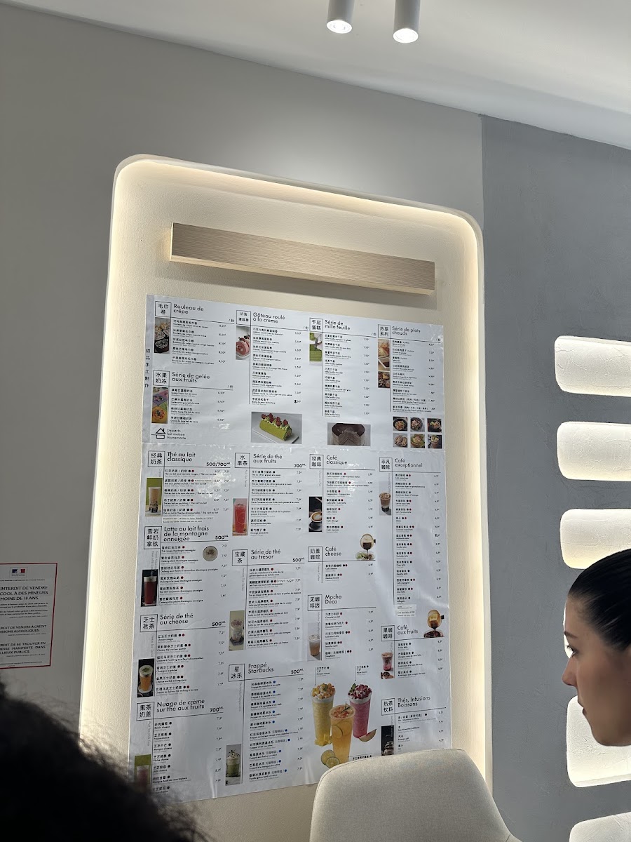 Delicious tea and bubble tea, and deserts to die for. The hot green jasmine tea with tapioca was so great for the cold winter of our visit to Paris. The atmosphere has a nice sophisticated minimalist style and the service was very nice as well on both times that we visited. They also serve Chinese food, but we didn’t have an opportunity to try it. Next time for sure! :)