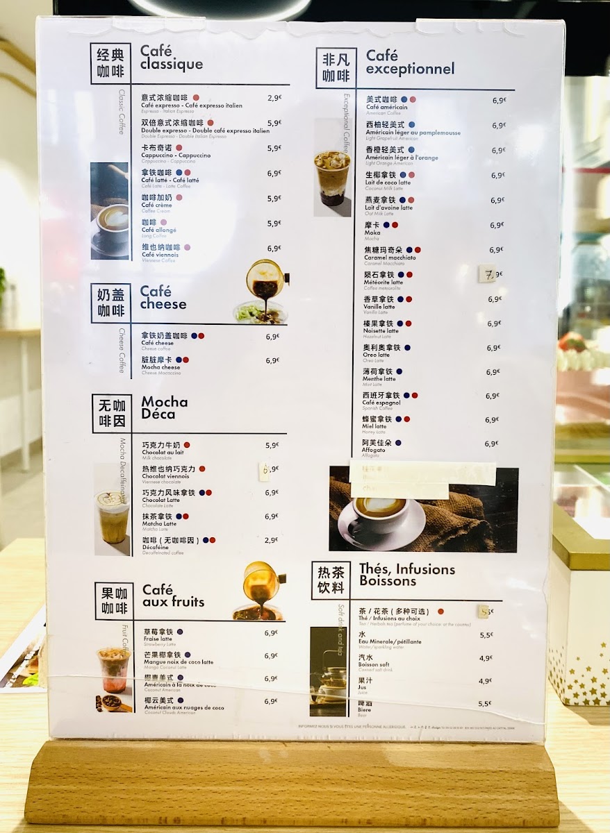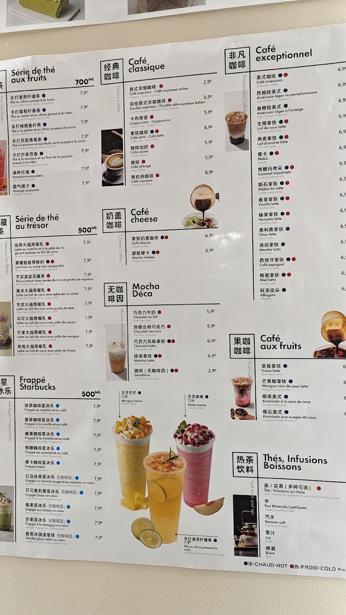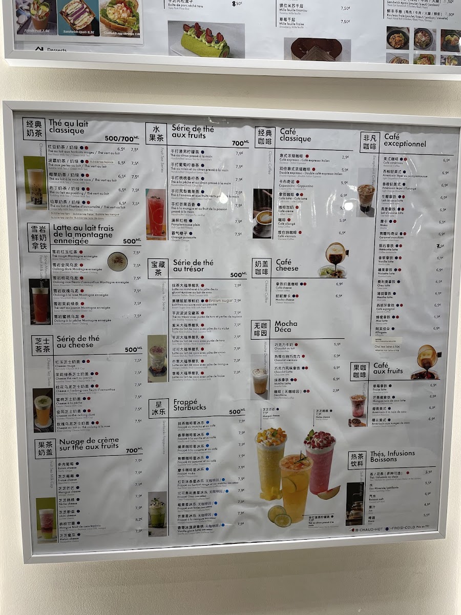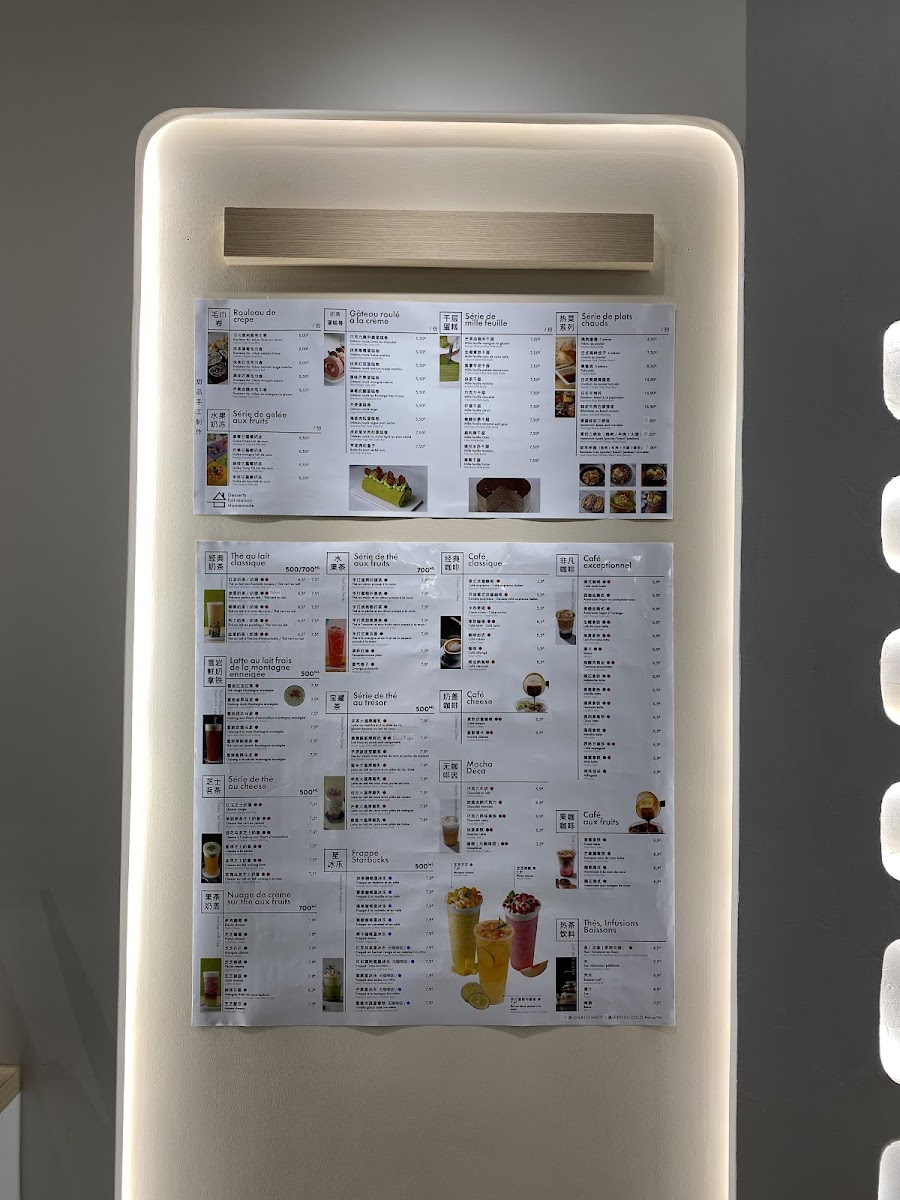 And let's not forget about their extensive beverage menu, featuring unique options like the Latte au Matcha et à la Pâte de Riz Gluant Épaisse au Lait de Coco and the Frappé au Haricot Rouge et au Matcha.